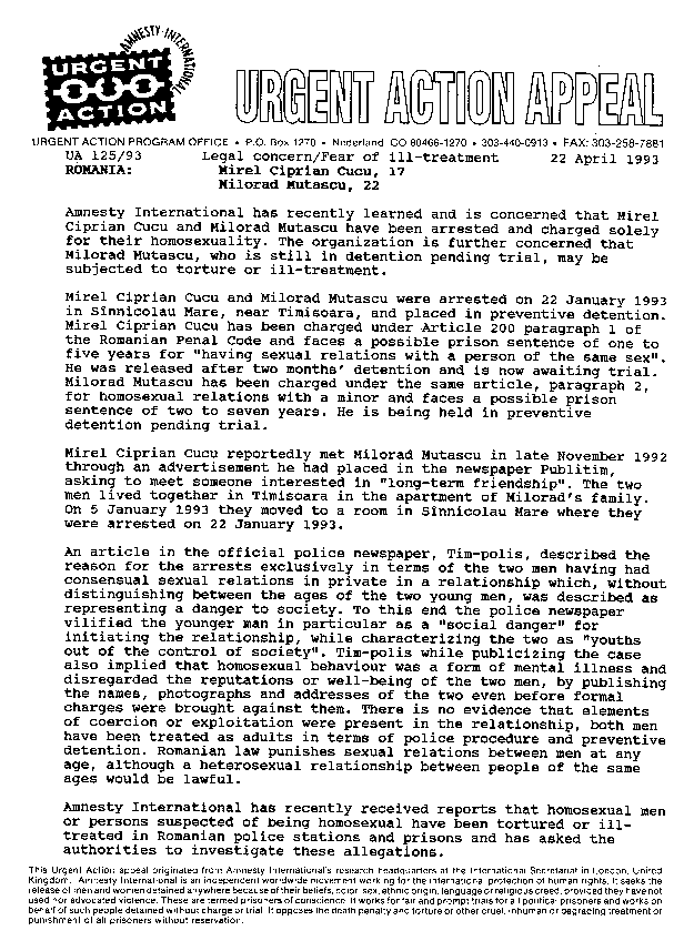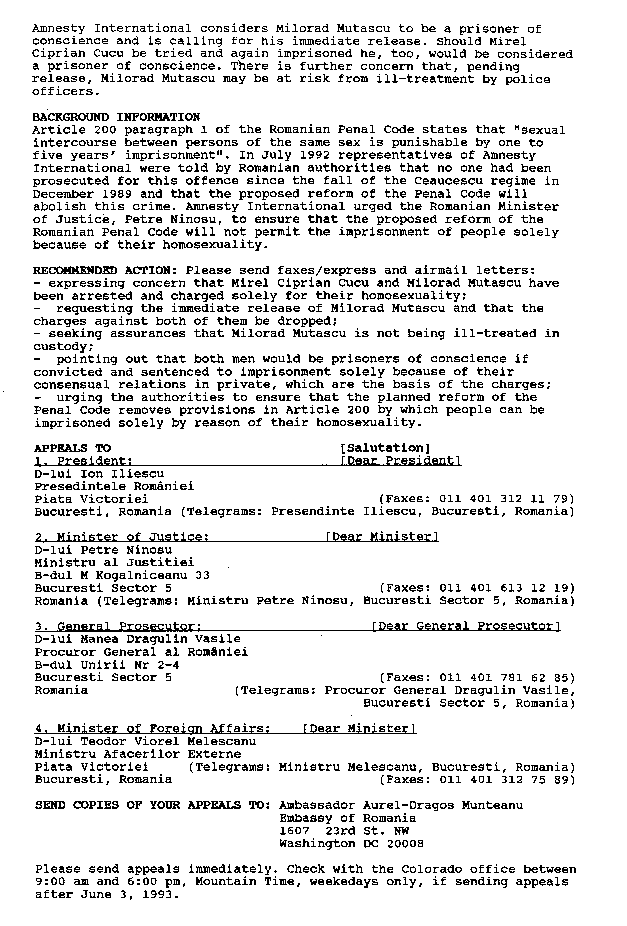 ROMANIAN URGENT ACTION CASE