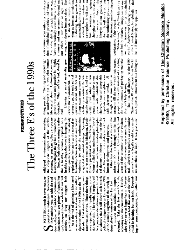 Materials Student Handout: The Three E's of the 1990's by Rushworth Kidder