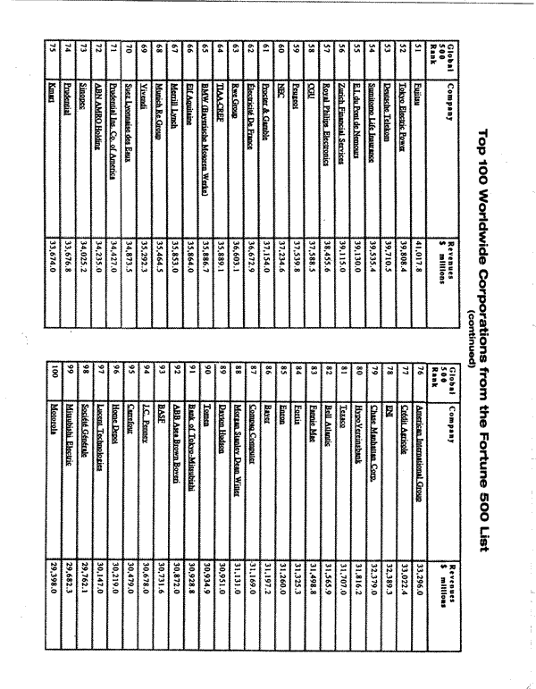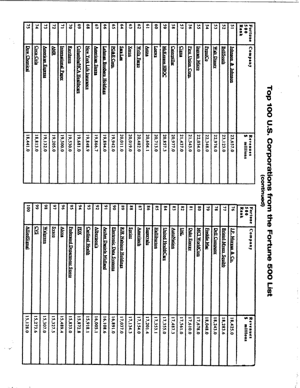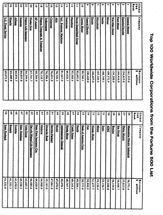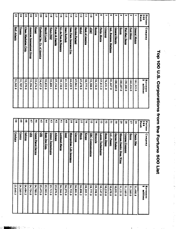 6. To emphasize the size of modern corporations, ask your students the following: How much do you think the #1 company by revenue sold in 1998? Where do you think Microsoft ranked? $161.3 billion-General Motors; Microsoft ranked 137th in 1997 revenue. How much do you think the top 10 revenue companies in 1997 sold combined? Who might they be? $973.8 billion; see Transparency Model Project transparency to reveal answers and discuss figures. Stockholders' equity is the sum of all capital stock, paid-in capital and retained earnings at the company's year end.